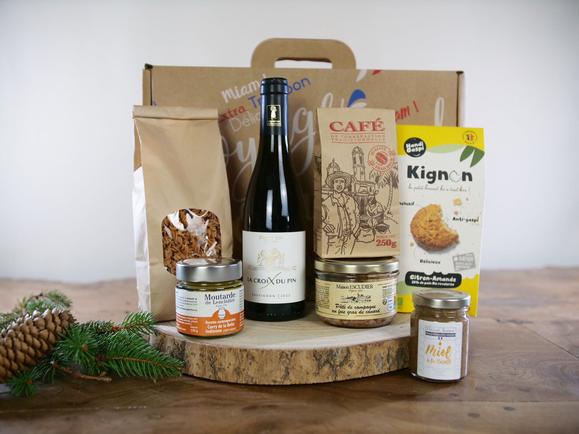 Découvrez notre coffret gourmand 'L'Épicurien', une sélection de produits qui incarne l'art de la gastronomie. Ce coffret comprend du miel à la noisette, la Moutarde de Lencloitre au curry 'La Belle Indienne', des Fusilli artisanales au piment d’Espelette, des Biscuits Handi Gaspi Kignon au citron et amandes, un Vin blanc sauvignon, du Café de torréfaction artisanale en grains, et enfin, un Pâté de campagne à l'ancienne au foie gras de canard 20%. Offrez-vous une aventure gastronomique inoubliable avec ce coffret gourmand d'exception.